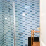 Der er et bidet, separat toilet og et badekar.